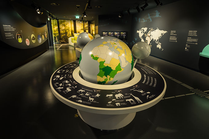 Die Ausstellung interpretiert ausgewählte Aspekte, die das Naturerlebnis der Nationalpark-Besucher ergänzen und verstärken. Neben visuell und haptisch beeindruckenden Präparaten laden verschiedenste Ausstellungselemente die Besucher dazu ein, selbst aktiv zu werden. Zum Beispiel ermöglichen sieben interaktive Exponate zum Thema Sinne den persönlichen Vergleich mit speziellen Fähigkeiten von Tieren. Hier können sich die Besucher mit den Tieren messen: mit den Augen eines Greifvogels, mit dem Magnetsinn eines Storchs, mit dem Tastsinn einer Spinne und dem Geruchssinn einer Biene. Höhepunkt der Ausstellung ist ein medial inszenierter Raum, den die Besucher selbst mitgestalten können. Der Weg führt auf einem Steg durch unterschiedlich hoch abgehängte Kugeln. Gerichtete Projektionen und Geräusche schaffen eine begehbare Interpretation von Natur. Halten die Besucher inne – und am Geländer fest – locken Sie Tiere hervor, die sich draußen vor ihnen verstecken würden. Die Inszenierung soll die Besucher sensibilisieren und für die versteckte Schönheit der Natur empfänglich machen. Sie setzt das Nationalpark-Motto „Natur Natur sein lassen“ interaktiv um. Mit sieben Projektoren wird hier der Wechsel der Jahreszeiten auf rund 52 unterschiedlich große Kugeln projiziert. In vier Stimmungsbildern geht die Projektion einmal durch Tag und Nacht und die vier Jahreszeiten, wobei auch Wetterphänomene integriert werden. Unterstützt wird die Inszenierung durch eine 8-kanalige Sound-Installation mit Tondokumenten aus der Wildnis. Durch drei Sensoren und LED-Anzeigen im Handlauf können die Besucher direkten Einfluss auf den Ablauf der Inszenierung nehmen.