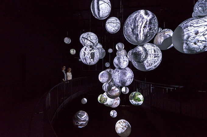Mit sieben Projektoren wird hier der Wechsel der Jahreszeiten auf rund 52 unterschiedlich große Kugeln projiziert.
